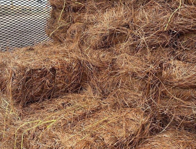 Premium pinestraw for pickup or delivery that can be installed to refresh your landscape. Sold by Bale or Rolls