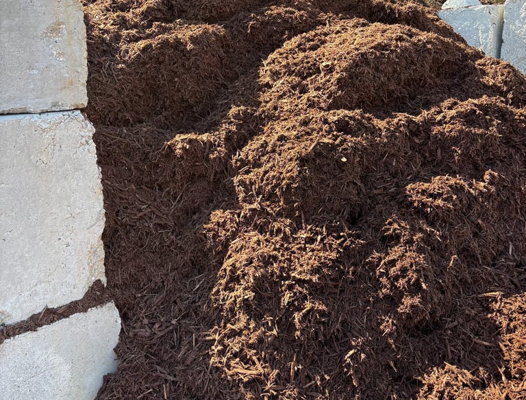 Durable Brown and Black Mulch for pickup or delivery that can be installed. Sold by the Yard